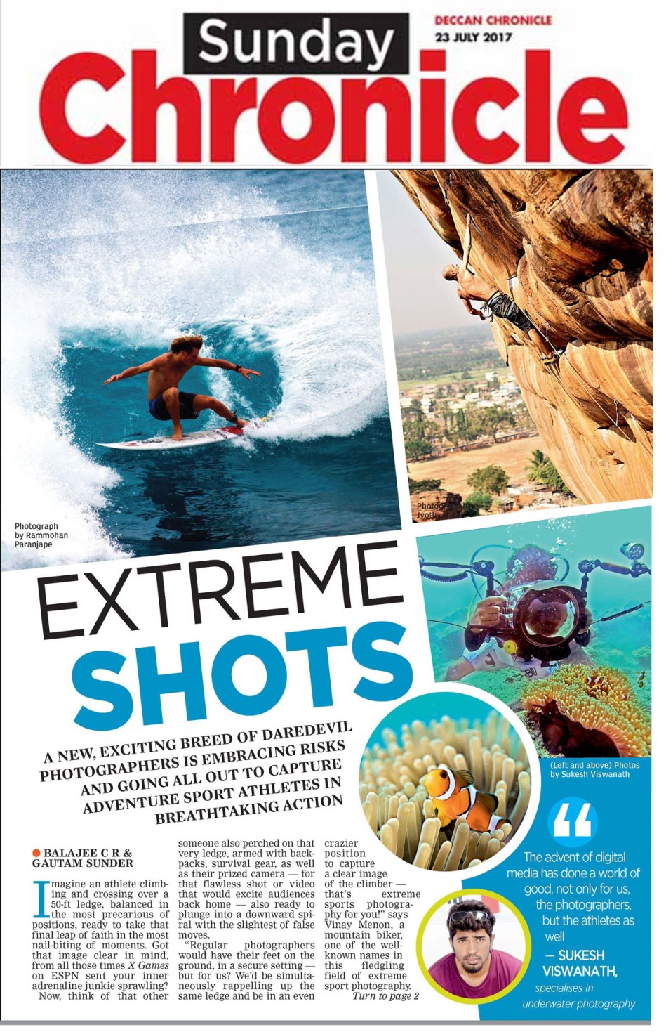 Published July 25, 2017 at 1179 × 1826 in Sunday Chronicle_Deccan Chronicle_Extreme Shots_23-July-2017_Extreme Sports Photographer Feature_Pg1_Vinay Menon Photography